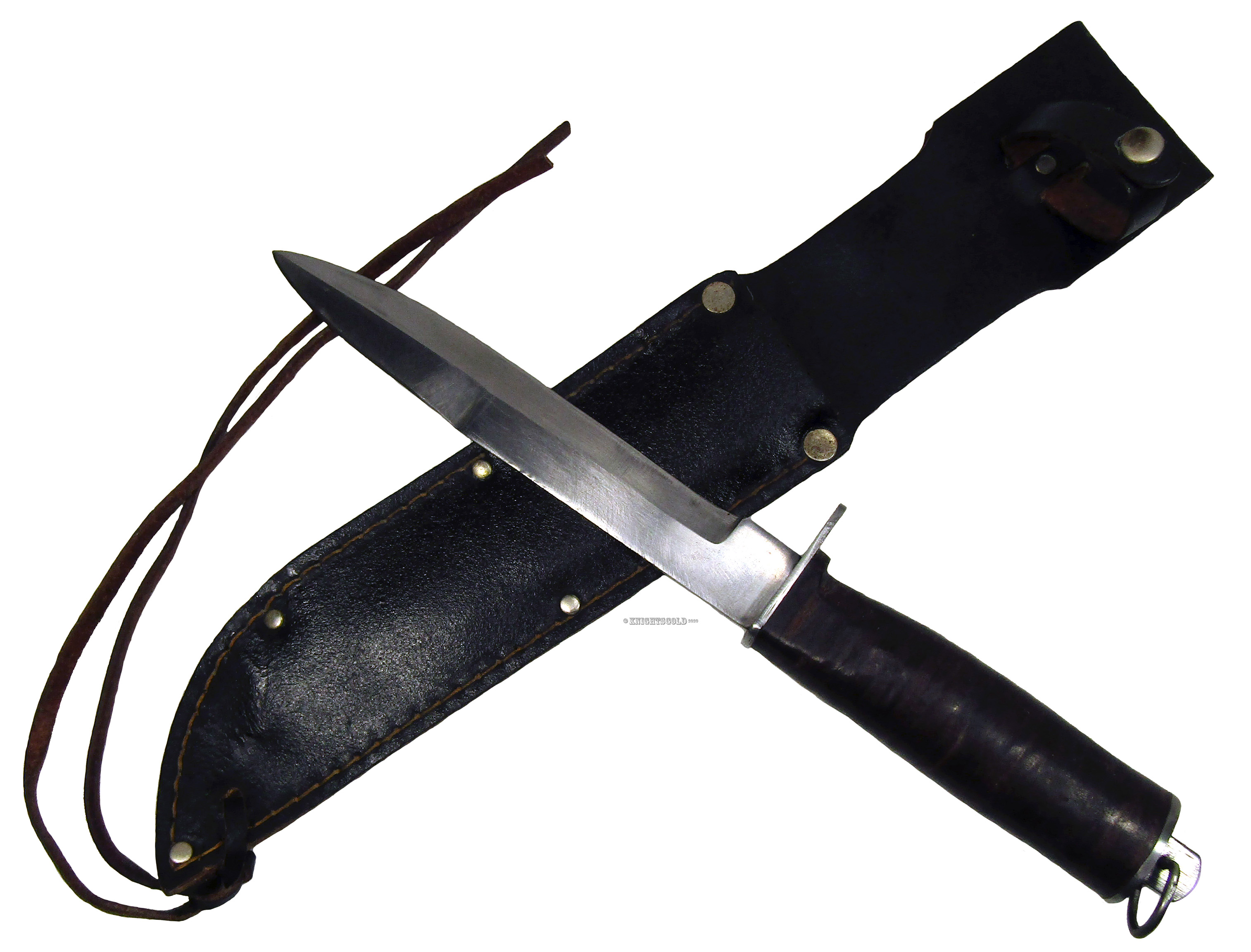 50s Korium PIC Japan Hunting Knife Stainless Steel Black Leather Sheath