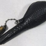 Antique Ottoman Bedouin Scrotum Leather Empty Powder Flask 21 cm