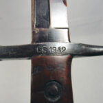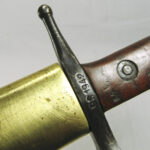 For your consideration, you are viewing an Antique Circa 1890s piece of Italian military history. This bayonet is an M1891 Italian Carcano Mannlicher Bayonet and Scabbard and was designed for use on the 6.5 mm M1891 Mannlicher or Carcano rifles and most of the M1891 carbines. This bayonet will not mount to the M1891 Cavalry Carbine (Moschetto da Cavalleria), 2nd model M1891 TS Carbine (Moschetto per Truppe Speciali), or the M1938 Short Rifle (Fucile Corto). These models have bayonets made specifically for them. Scabbards can be leather with either brass or steel mounts, with either a leather-covered ribbed or smooth steel body. This example has Brass Mounts and a ribbed leather-covered body. On entering WW1 Italy found itself short of arms so to facilitate supplies many of the old Vetterli Model 1870 bayonets were shortened and their hooked quillon was removed, to conform and fit the Carcano rifle. Successively the M1891 Carcano replaced the Vetterli-Vitali rifles and carbines, these bayonets date from 1891 and were still in use in 1945 WW2, and have had nearly 50 years of service life, as it was the standard rifle bayonet of the Italian Armed Forces in both World Wars. This has no manufacturer stamp but it was most likely manufactured by "Fabbrica D'Armi Di Terni" or translated "Firearms Manufacturing of Terni" The pommel has a push-button lock/latch and T slot for attachment to the rifle, with 2 piece wood grips attached to the tang with 2 rivets. It has a straight quillon with a ball finial with a muzzle ring of 12.5 mm. A straight 12" blade with a single edge and fuller to both sides which ends within 75 mm from the spear point tip end. # The makers and inspection marks are:- CROSSGUARD: "PS 1942"