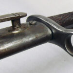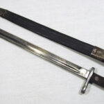 For your consideration, you are viewing an Antique piece of Spanish Military History, this is a Spanish M1913 Bayonet complete with a rare matching number Leather Scabbard, these were adopted in 1913 as the Bayoneta Modelo 1913, and this bayonet replaced the M1893 bayonet. With the introduction of the 7 mm M1916 Short Rifle in 1916, the M1913 bayonet was, instead, designated for use with this M1916 Rifle and subsequently also designated for use with the 8 mm M1943 Short Rifle. The M1913 bayonet was one of the rare bayonet types that utilized checker wood grips. The scabbard is stitched leather with a steel mount locket and drag. This example was made at Artilleria Fábrica Nacional, Toledo, Spain. This retains the Toledo crest, which is rare as so many of them have been polished off as was frequently done on military surplus bayonets.